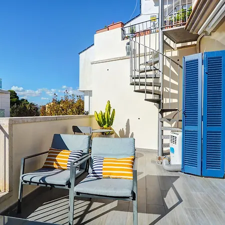 2-slaapkamer Beachstyle Penthouse By Hello Homes Sitges appartementen bevatten een terras met een eettafel en stoelen en uitzicht op de zee Het appartement van 110 m^2 is in het hart van Sitges gelegen.
